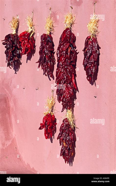 NA, USA, New Mexico, Santa Fe, Plaza, Dried Strings of Chili Peppers from www.alamy.com